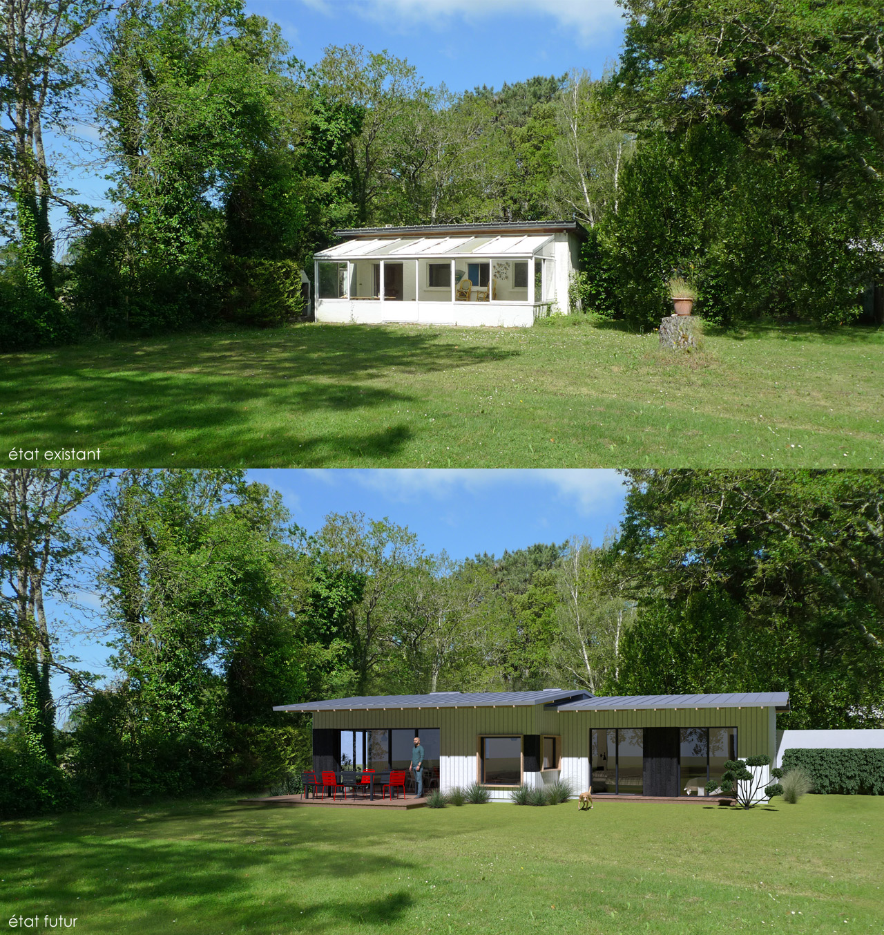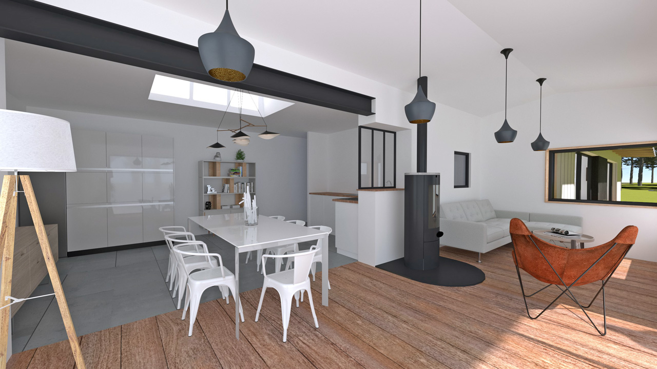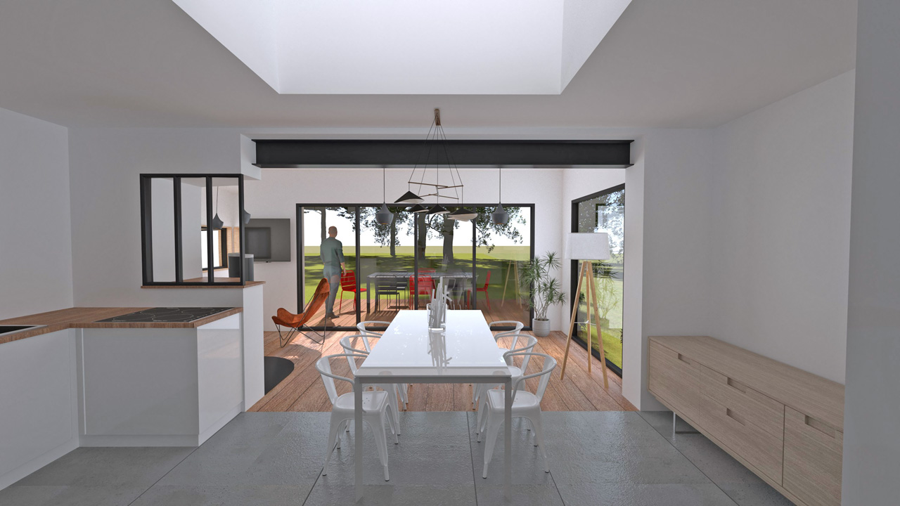 Programme : Rénovation d’une maison individuelle + construction d’une extension ossature bois
